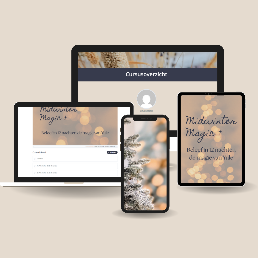 Midwinter Magic begeleidt je elke nacht met zachte rituelen, reflecties, symboliek en mini-oefeningen afgestemd op de energie van de Yule-periode.